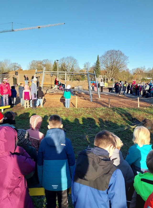 Aufgrund der großen Baustelle für unseren Erweiterungsbau musste der alte Spielplatz schon vor einiger Zeit weichen. An neuer Stelle entstand in den letzten Monaten ein neues Spielgelände.