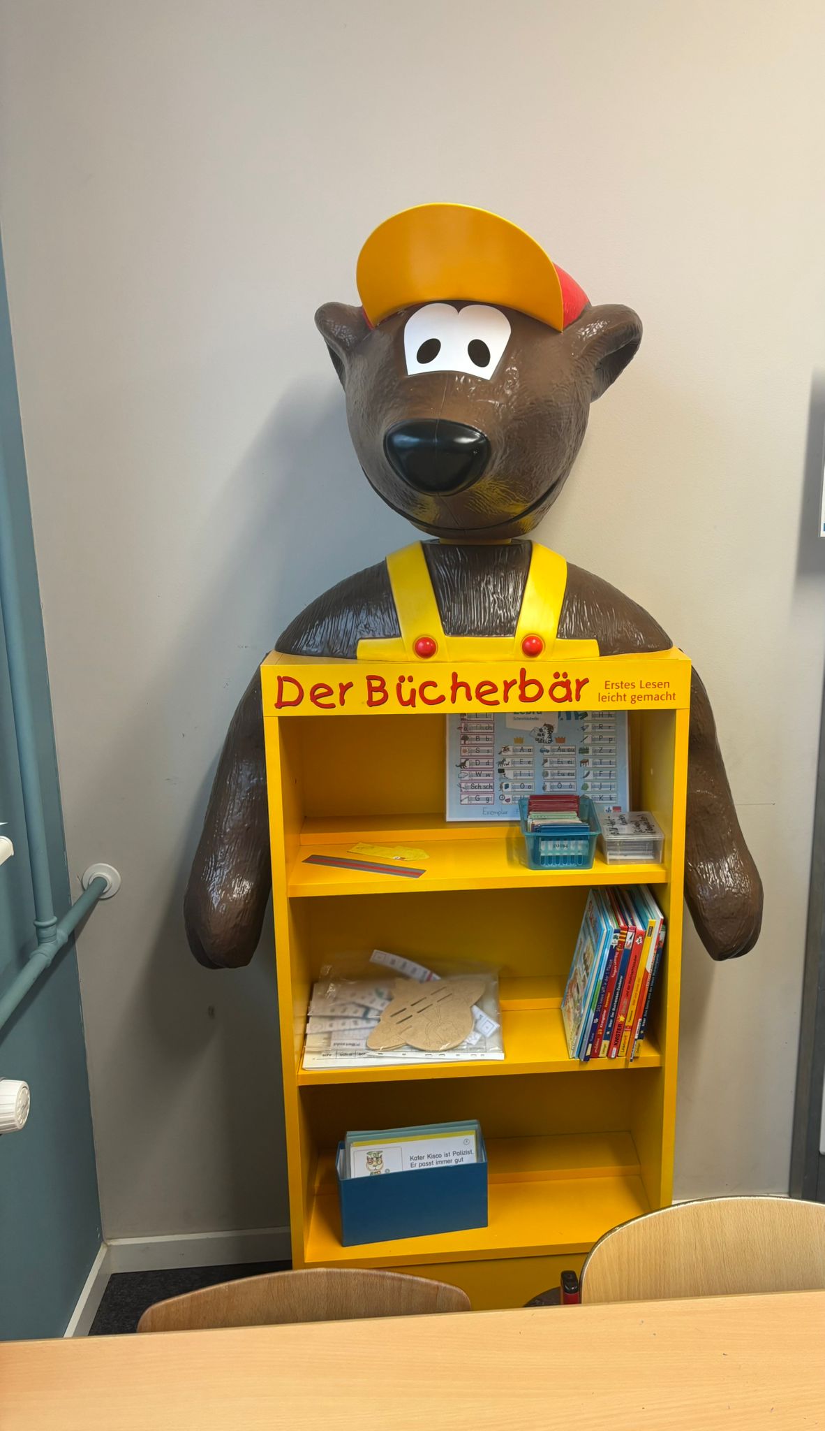 Frau Christensen telefonierte sofort mit Frau Brüning und durfte das Regal am nächsten Tag bereits in die Schule holen. Hier hat es nun ein neues Zuhause.