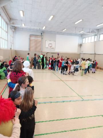 Heute feierten wir in Adelby unser Faschingsfest. Viele Kinder und Erwachsene kamen verkleidet in die Schule. In allen Klassen wurde getanzt und gespielt. In der Turnhalle gab es eine Polonaise, außerdem durfte sich jede Klasse ihr Lieblingslied wünschen. Es war ein schöner und bunter Tag bei uns!